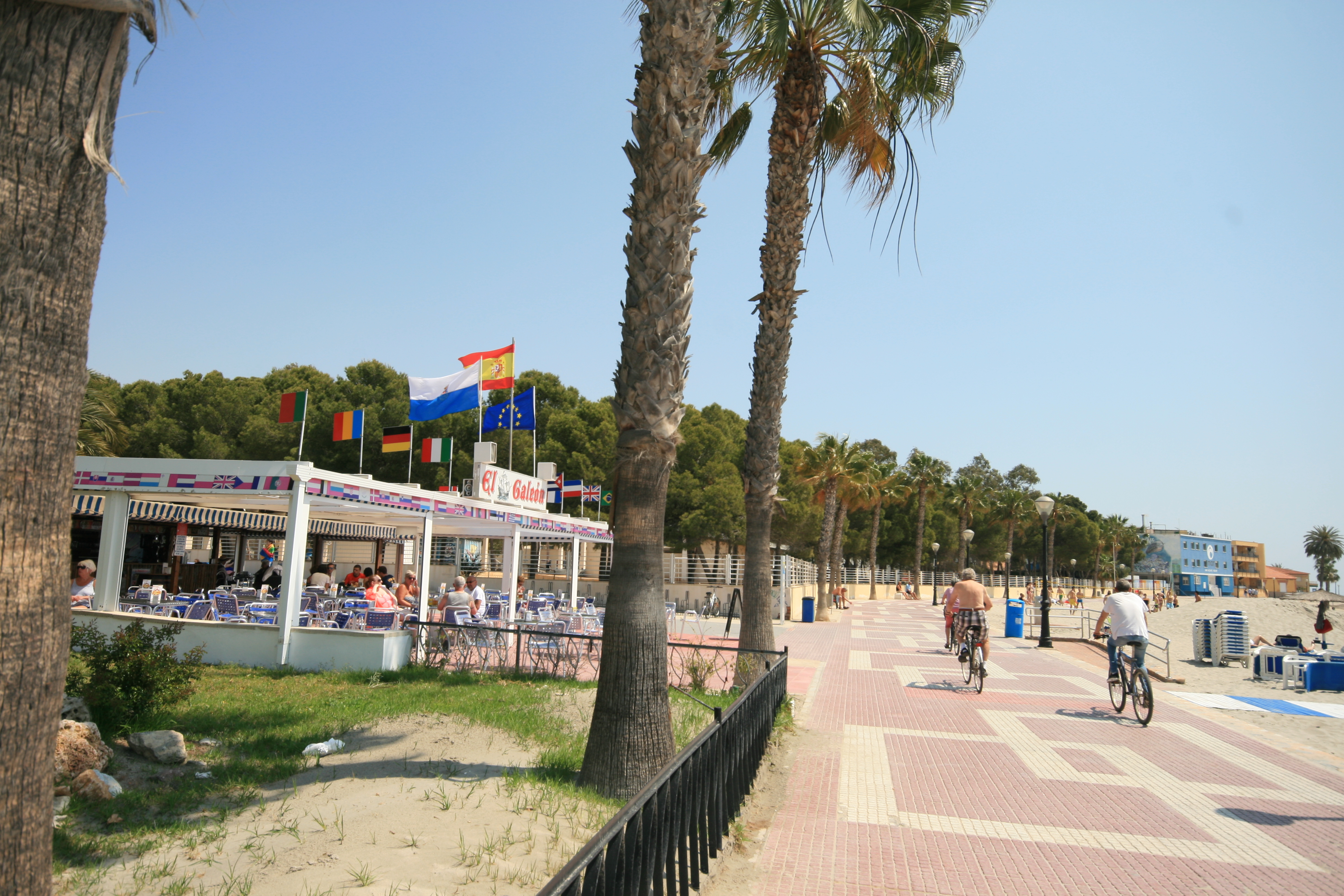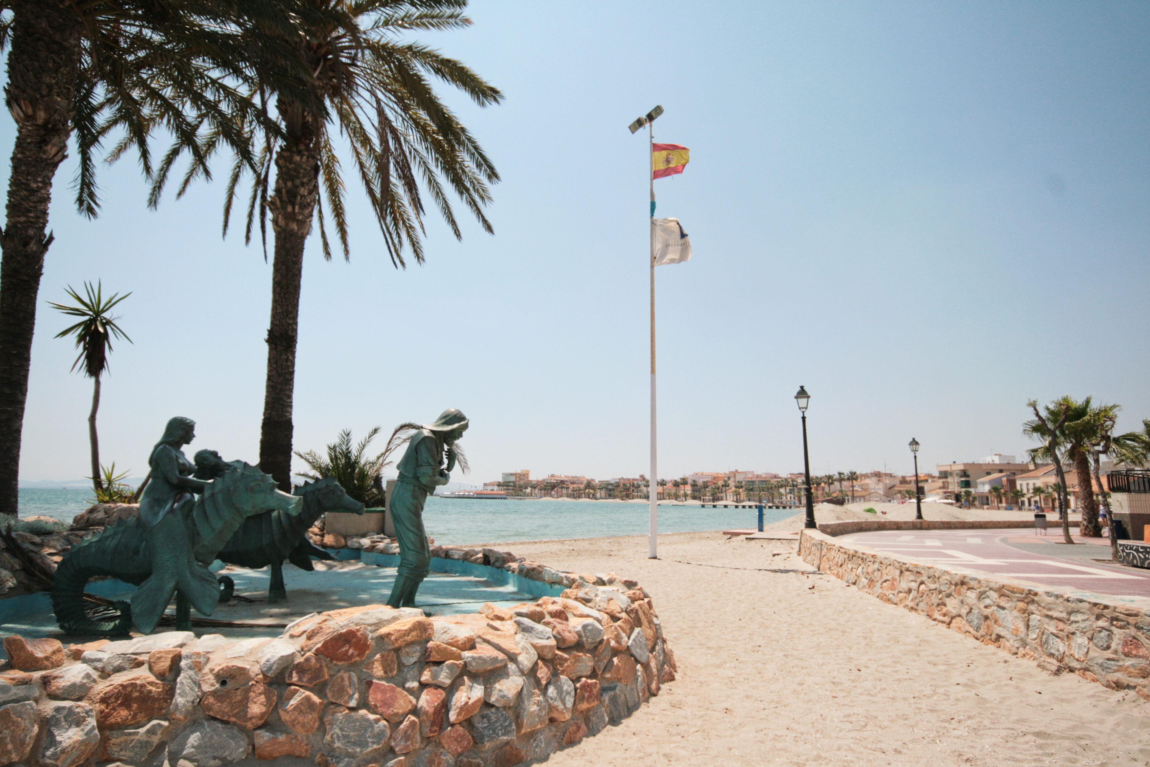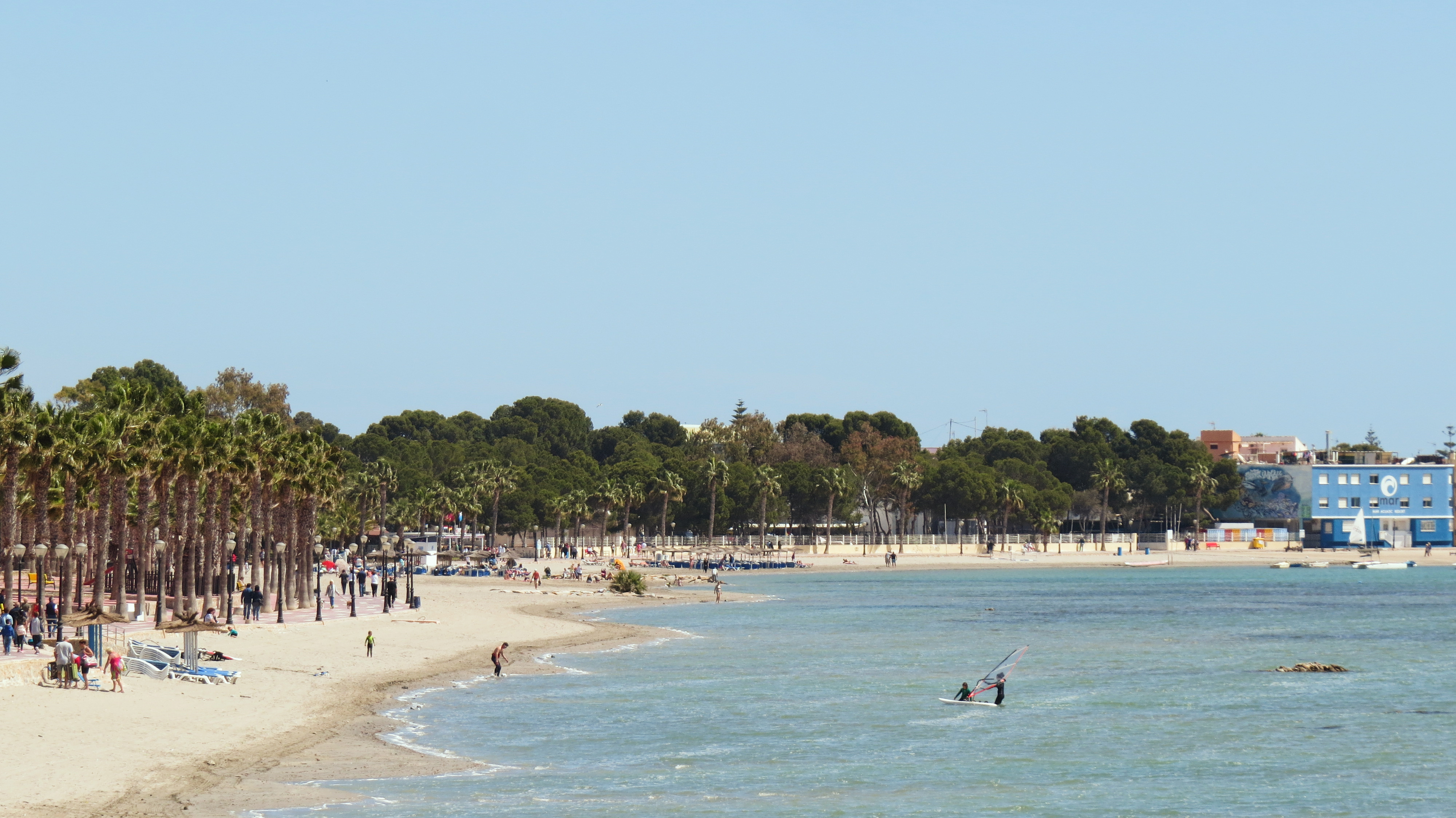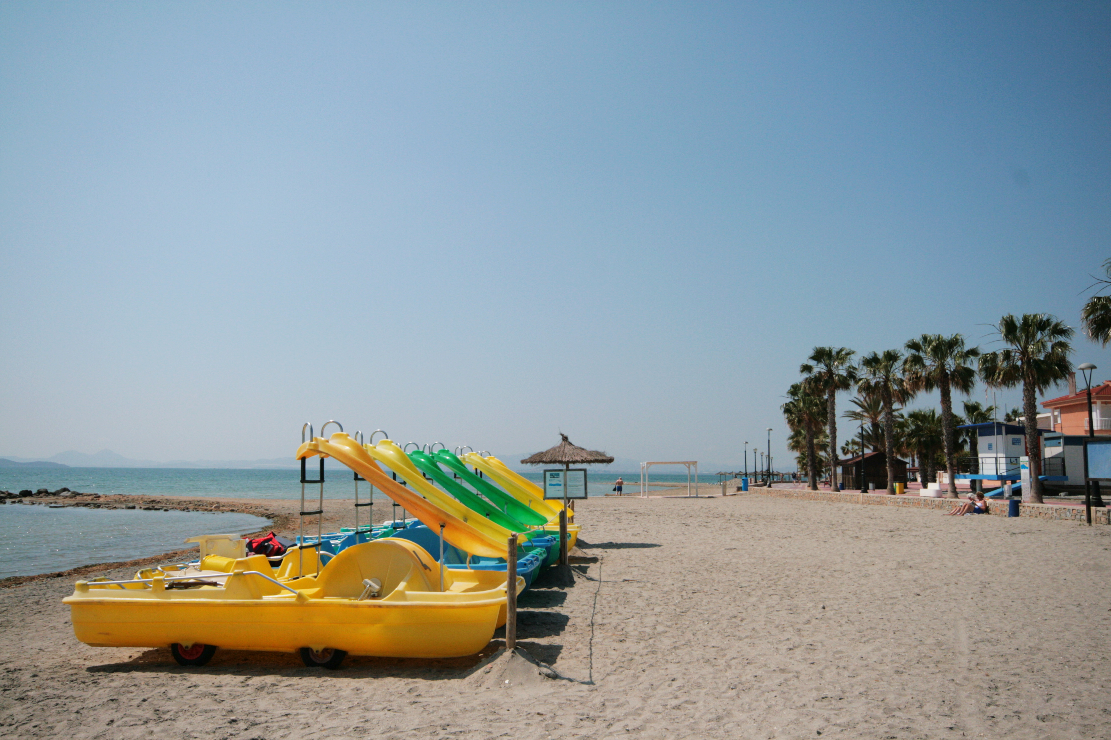 The beaches of los alcazares stretch 7km along the pedestrian walkway and is very flat, the area is great for walking and cycling. The Mar Menor (little sea) which is the largest salt water lagoon in Europe and is separated from the Mediterranean by La Manga strip. The waters of the Mar Menor are shallow and warmer than the Mediterranean making it great for bathing in its therapeutic waters.
